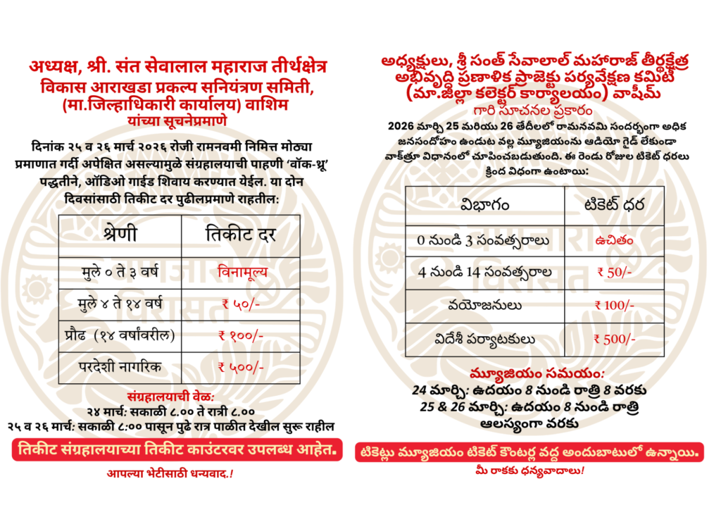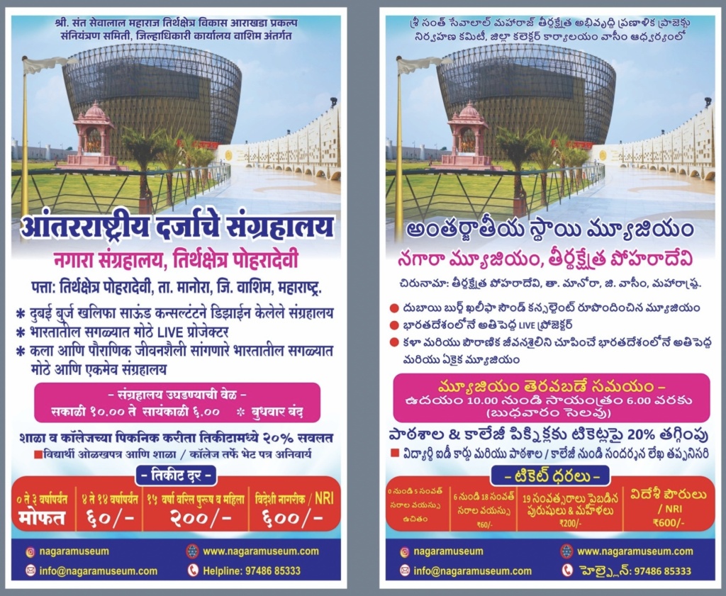 It is located in Poharadevi, a holy place for the Banjaras. The museum shows and preserves their culture, traditions, and stories. This museum is designed using advanced technology light and sound effects. “A world-class museum that everyone should visit! A must-see destination for people from all communities across India.